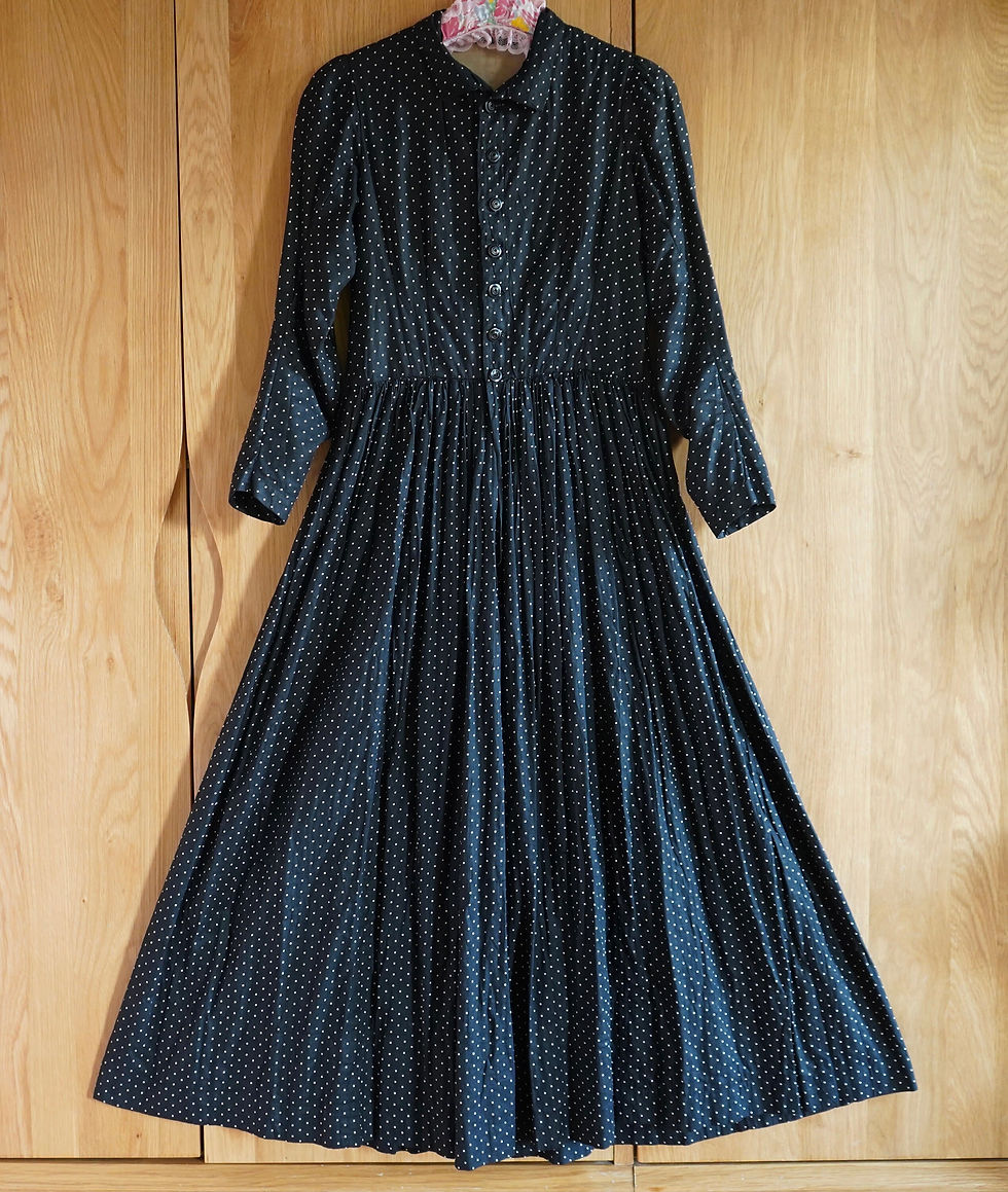 Uma-1970s Vintage Indian Gauze Cotton Block Print Dress